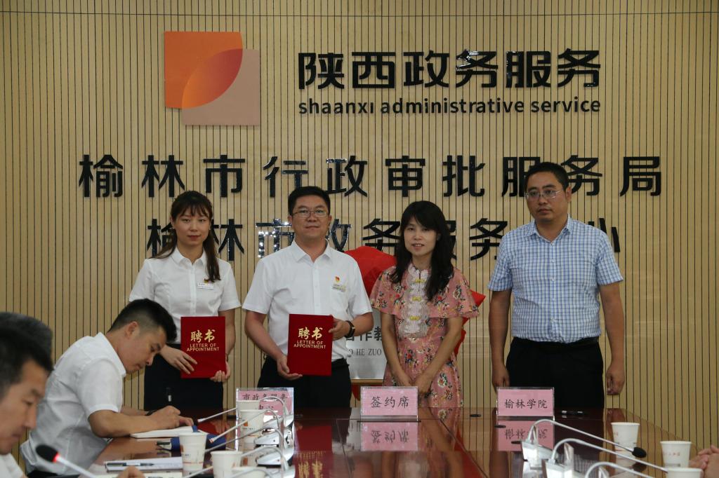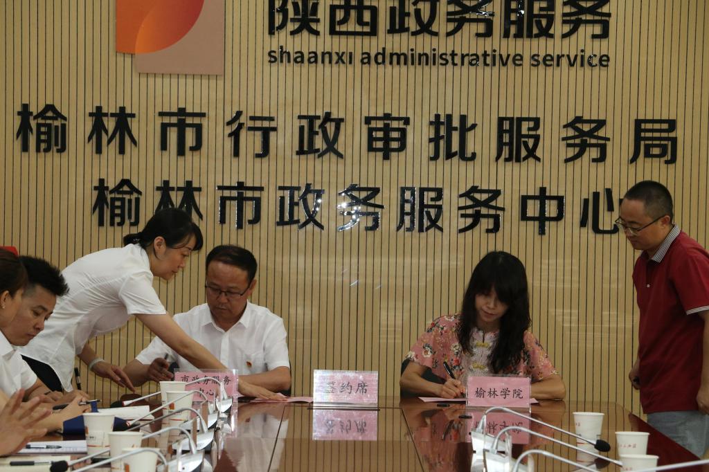 2021年7月16日下午2点30分,政法公司与榆林市政务服务中心在榆林市政务服务中心三楼会议室举行了行政管理专业产教合作与实践教学基地建设签约暨揭牌仪式。政法公司经理白炜、副经理李娜、副书记张国涛,榆林市行政审批服务局局长、党组书记韦福祥,榆林市政务服务中心主任冯涛,副主任李滨、徐香发、井好法以及各科室负责人、各驻厅窗口负责人和中心的业务骨干,政法公司行政管理专业部分教师和2019级行政管理专业实习生参加了签约与揭牌仪式。仪式由榆林市政务服务中心主任冯涛主持。