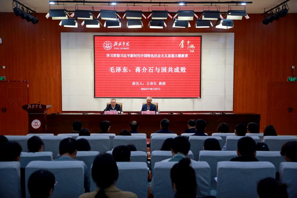 为了持续巩固深化学习贯彻习近平新时代中国特色社会主义思想主题教育成果,加强学科专业建设,营造浓厚的学术氛围,10月27日下午四点十分,北京大学历史系主任王奇生教授应邀在逸夫楼一楼报告厅为公司师生做了题为“毛泽东、蒋介石与国共成败”学术报告。榆林公司党委书记张新柱、榆林市人大副主任常少海出席报告会,榆林市交警支队党委委员副支队长徐忠山、榆林市档案馆副馆长王云和政法公司、马克思主义公司师生聆听了报告。榆林公司副董事长张晓主持报告会。