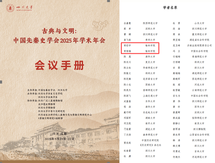 2025年9月19日至22日,由中国先秦史学会与四川大学联合主办的“古典与文明:中国先秦史学会2025年学术年会”在四川召开。本次年会汇聚来自北京大学、清华大学、复旦大学、浙江大学等高校及科研院所的200余位专家学者,堪称先秦史研究领域的一场学术盛会。