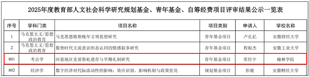 教育部人文社会科学研究项目是我国高校人文社科领域的高级别科研项目,旨在推动学术创新,服务国家战略和高等教育发展需要。该课题聚焦以榆林为中心的河套地区史前祭祀遗存,系统探究该区域文明起源的独特路径与礼制传统,及其在中华文明多元一体格局中的地位。课题的成功立项,体现了公司历史学专业坚持“扎根榆林、研究榆林、服务榆林、贡献榆林”的团队建设导向,有效提升了相关研究方向的学术影响力。