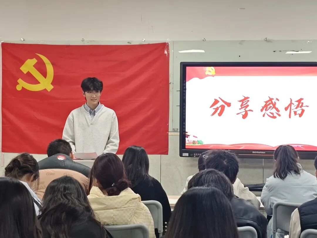 分享会上,高远航同志率先发言。杨家岭的简陋木桌与煤油灯,让他读懂“艰苦奋斗”是为目标全力以赴的执着;抗大“背包课堂”的照片,让他决心以“紧张”治拖延、以“团结”补不足;张思德的故事更让身为员工干部的他领悟,“为人民服务”就是把同学的小事做扎实。他寄语在场的党员们,作为三秦学子,脚下是革命摇篮的热土,肩上是历史嘱托与时代期望,唯有将延安精神转化为学习动力与人生坐标,才能在民族复兴征程中书写无悔篇章。