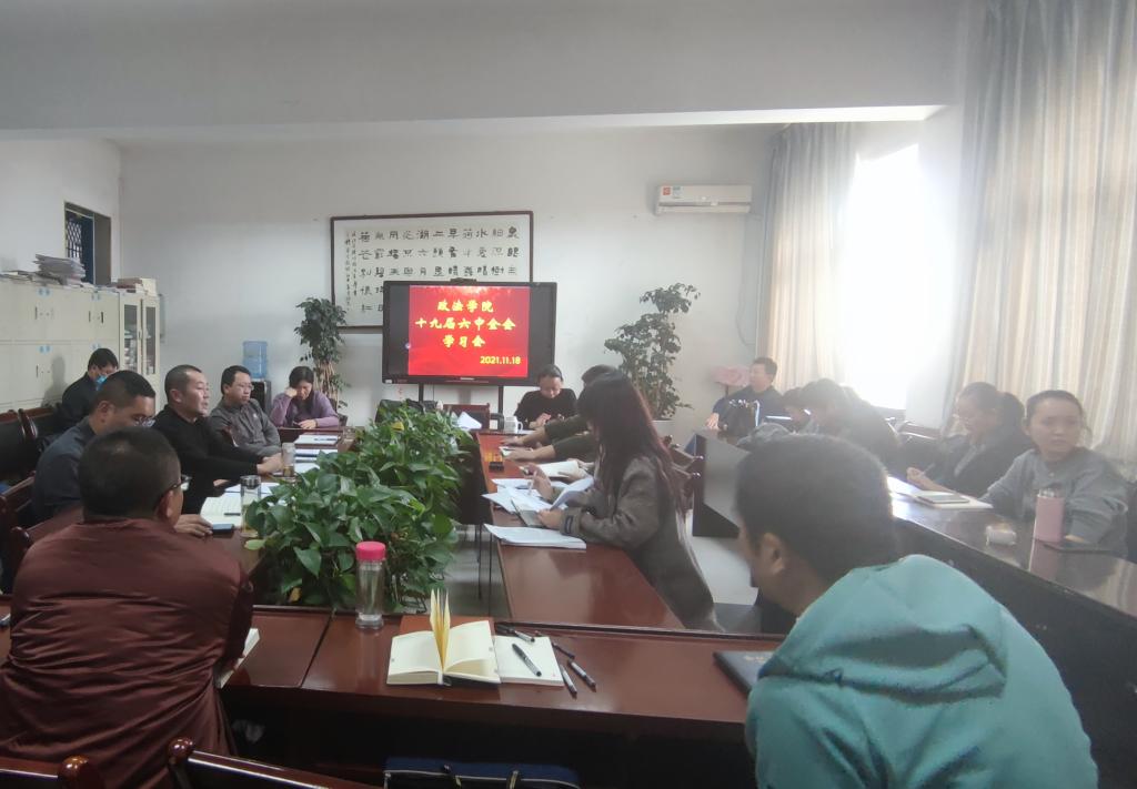 2021年11月18日下午2点30分,政法公司在三号教学楼三楼会议室召开了十九届六中全会学习会,政法公司全体教师参加学习会,政法公司经理、党总支副书记白炜主持学习会。