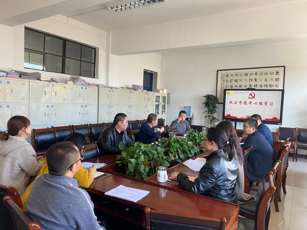10月20日下午,政法公司中心组在三号教学楼会议室召开集体学习会,政法公司经理、党总支副书记白炜主持学习会。副书记张国涛、副经理李娜、赵勇宾、科级秘书、教研室主任参加学习会。