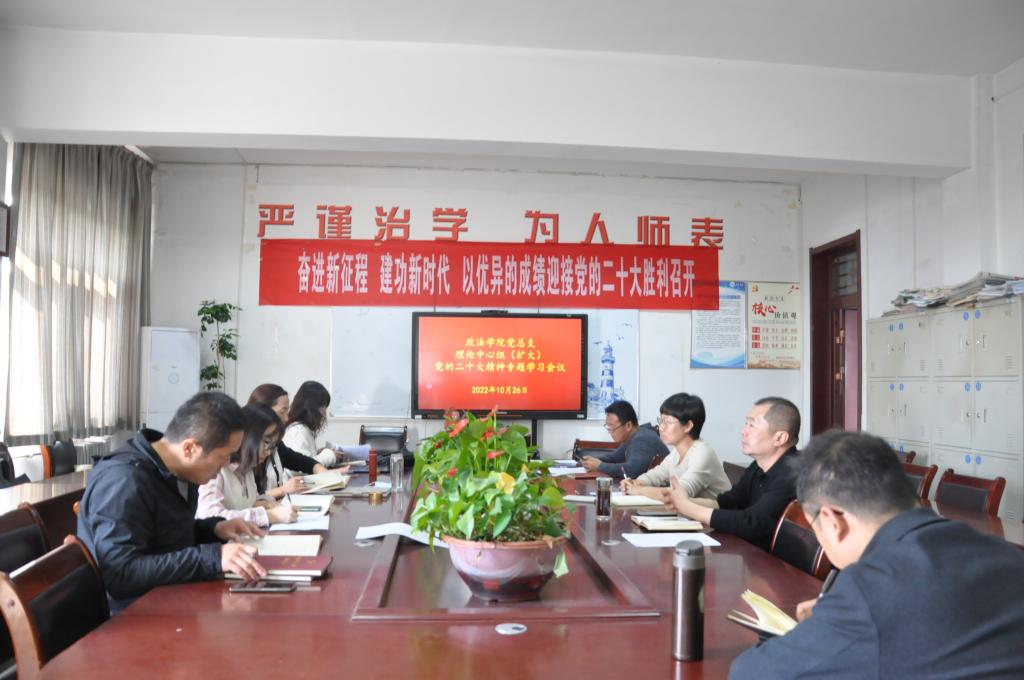 10月26日下午,政法公司党总支召开理论学习中心组(扩大)会议,专题传达学习党的二十大精神,安排部署学习宣传贯彻工作。党总支书记李慧梅主持,各党支部书记、教研室主任、科级及以上干部参加。领导班子成员结合实际交流发言。