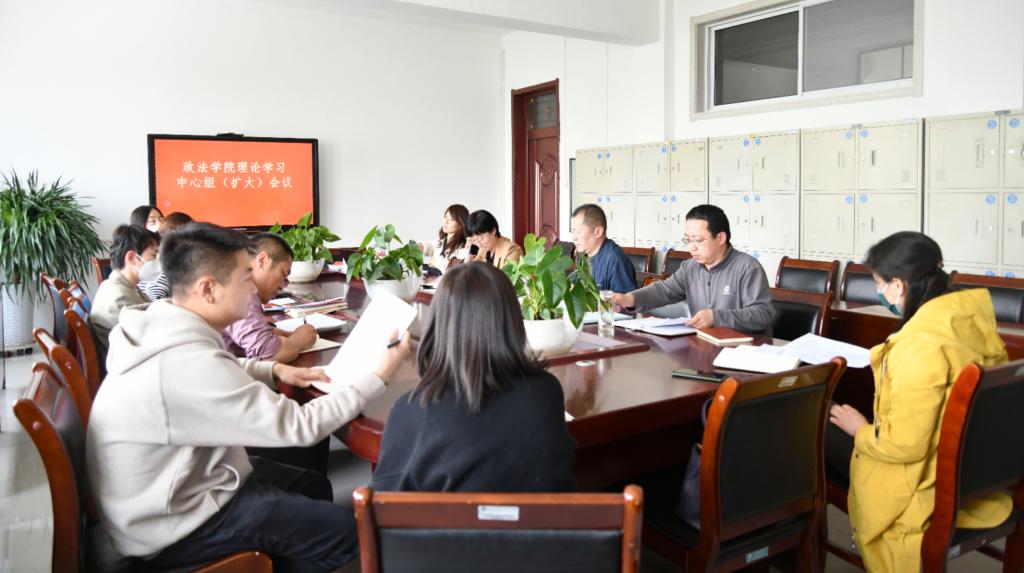 2023年4月18日下午16时,政法公司党总支理论学习中心组(扩大)在三号教学楼三楼会议室就学习贯彻习近平新时代中国特色社会主义思想主题教育进行集体学习。政法公司党总支委员、各党支部书记、科级以上干部参加。会议由政法公司总支书记李慧梅主持。