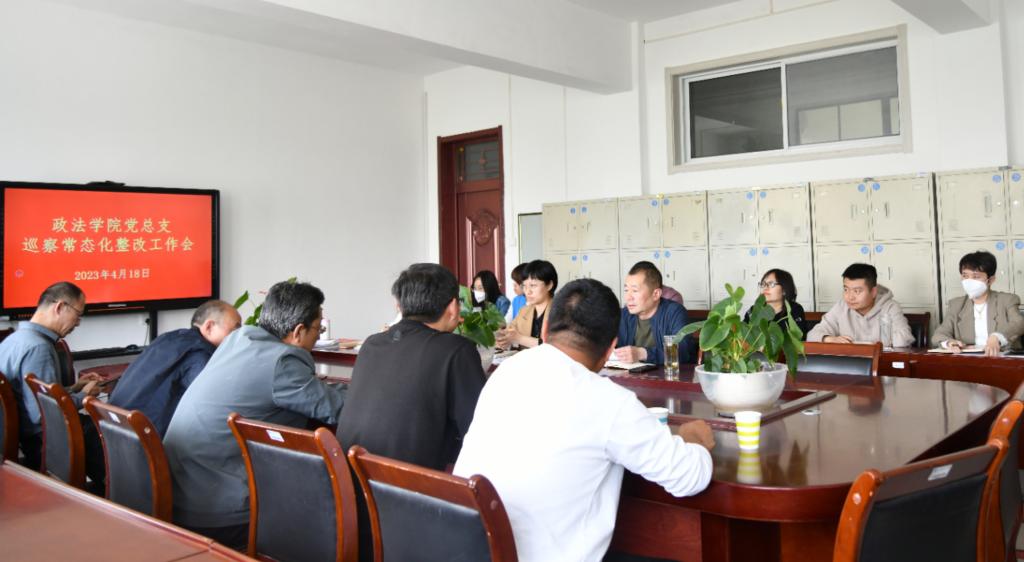 按照公司党委安排, 2023年4月18日,政法公司党总支召开巡察常态化整改工作会。党委巡察办公室主任李生林,校内第二轮巡察党委第一巡察组组长郝东卫,副组长张雄伟,组员李锋、马腾,政法公司党政班子成员、总支委员、科级干部、各党支部书记、教师员工代表参加会议。会议由政法公司经理白炜主持。