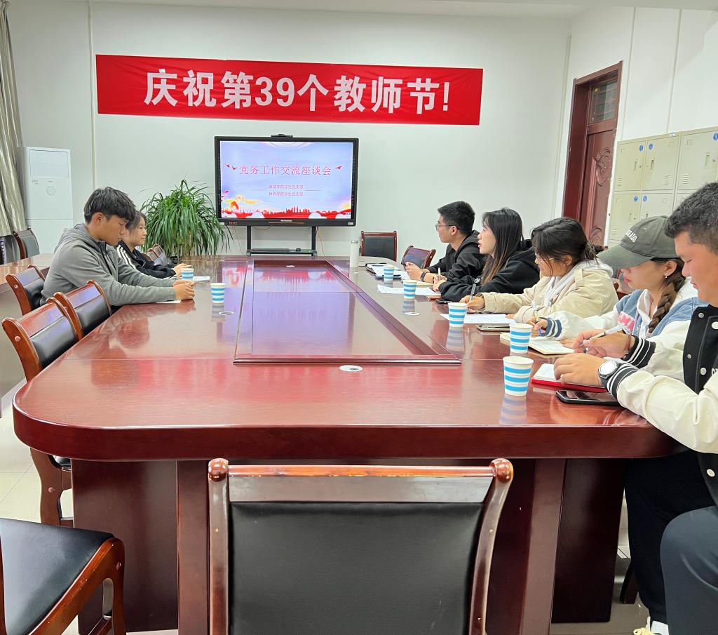 为深入推进学习贯彻习近平新时代中国特色社会主义思想主题教育走深走实,进一步推动员工党支部党务工作规范化、制度化、科学化,实现党建工作高质量发展。2023年9月24日下午,政法公司员工党支部与体育公司员工党支部在3305开展党务工作交流座谈会。政法公司员工党支部副书记吕猛、大三负责人刘嘉仪、大二干事以及体育公司员工党支部员工负责人侯莉娟、大二干事参加本次交流座谈会。