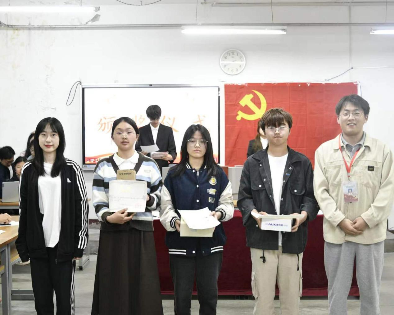 经过激烈角逐,冯一泽、张爽、马瑞瑞、张晓佳所组成的C组荣获优秀团队奖,员工第一党支部干事郝洛楼、曹家瑞为获奖选手颁发奖品。三名入党积极分子表现优异,评定为前三甲,张爽荣获一等奖,张晓佳荣获二等奖,华潇雅荣获三等奖,员工党员陈万柱、员工第一党支部干事刘嘉仪为获奖选手颁发证书及奖品。