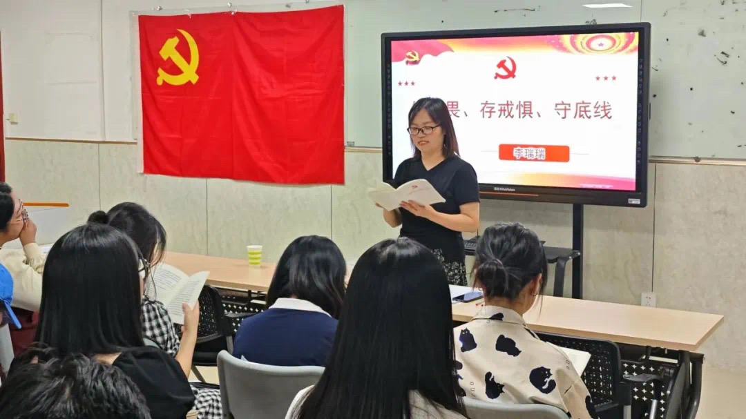 会议第二项,员工党支部书记李瑞瑞从知敬畏、存戒惧、守底线三方面展开了讲述: