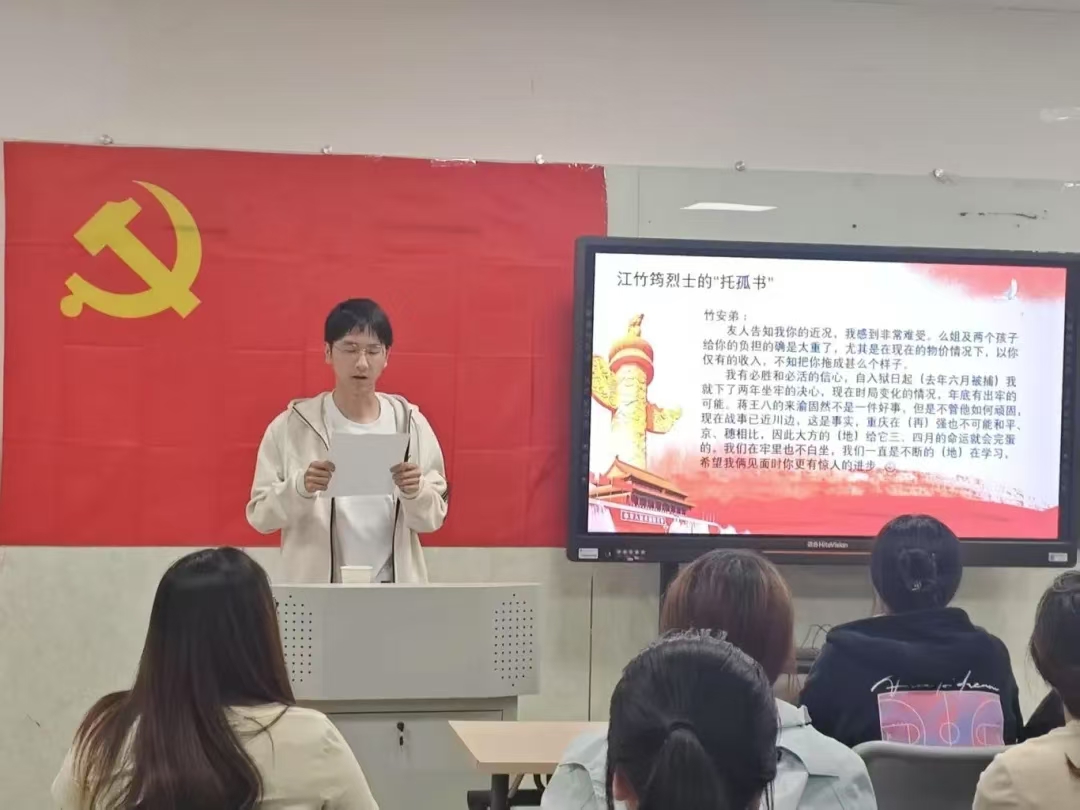 活动第三项,由宫俊浩同志和白炀同志诵读史砚芬烈士的《决心书》和江竹筠烈士的《托孤书》。家书中质朴的语言让在座的党员们从“被教育者”变为“共情者”,体现了理想信念的具体传递,是党性教育的生动教材。