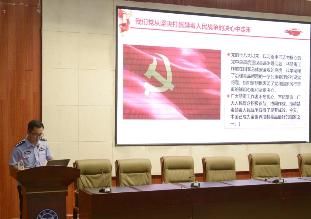 其次,高宝清致辞,他强调,近年来我国吸毒人员逐渐呈现低龄化趋势,对青年老员工的毒品预防教育尤为重要,希望同学们通过禁毒活动加强警戒意识,提高对毒品的认识,并参加到禁毒志愿者的队伍中来。