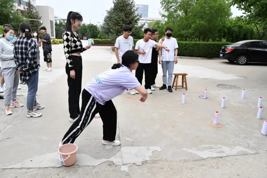 在游戏环节,同学们积极参与,互相协作,游戏也是异彩纷呈有“套圈圈”、”其实是运乒乓球“、“面包超人”、“一举高粽”、“摇呼啦圈”五个游戏现场气氛活跃,各个游戏都深受同学们的欢迎。在美食环节,不仅为同学们准备了专属于端午节的粽子,同时准备了西瓜、冰粉、水果等,以上食物可以通过参与游戏分别获得,在游戏环节中表现特别突出还可以获得最终大奖,参加满全部游戏的同学可以凭劵获得水果,酸梅粉和香包,活动后还为考研的同学们送去了粽子,希望他们能一举高“粽”。