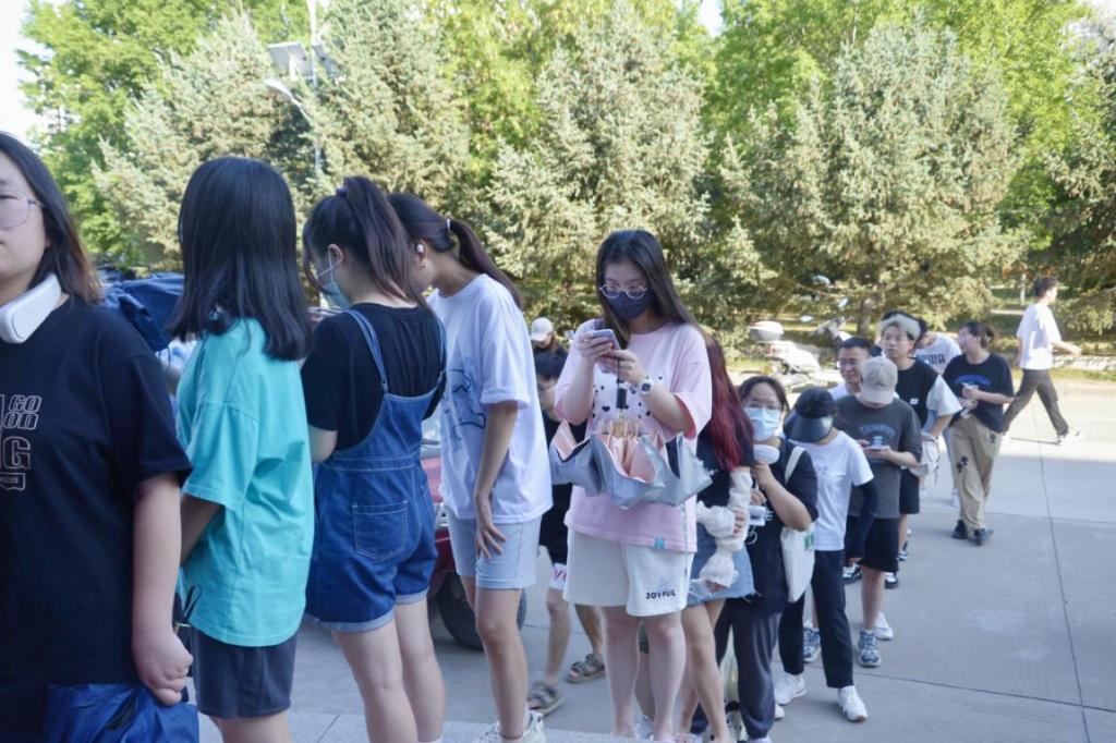 同学们以宿舍为单位来领取西瓜,在现场自觉排队,先登记后领瓜;院系老师们亲力亲为,为同学们分瓜装袋,让同学们能感受到院系领导老师们的关心和关爱;同时员工组织成员还为考研的同学、办公室的老师以及楼管阿姨送去西瓜,西瓜易得,心意可贵,炎炎夏日,沁人心脾。