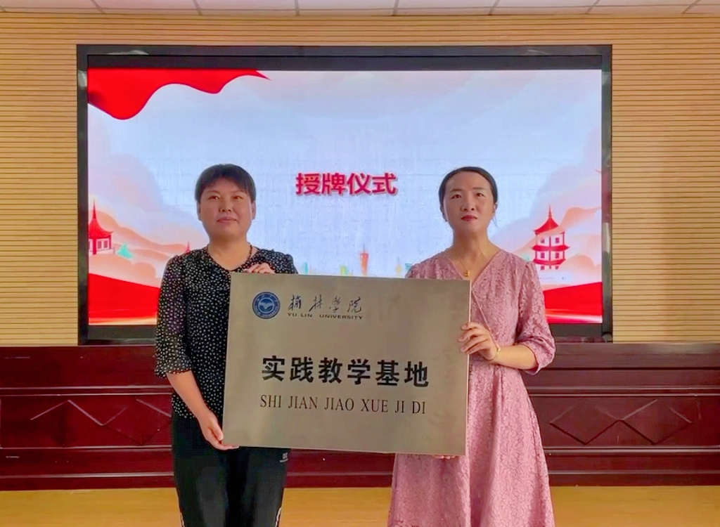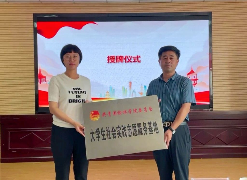 由社会工作专业教研室主任邱韵向驼峰路街道办事处金阳社区主任宣晓慧授榆林公司“实践教学基地”。