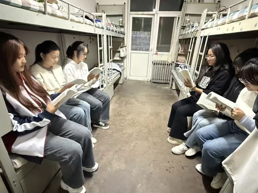 践行五乐育人,上好行走的“大思政课”。榆苑学子将五乐育人融入研学,不断深化五乐育人工程,扎实推进“大思政课”走深走实。依托延安丰富的红色资源,乐读方面,同学们在延安大学图书馆展览室,举行党团知识竞赛,在宿舍开展《平凡的世界》读书分享会,感受文学的魅力,以实践检验知识;乐唱方面,在宝塔山上同学们共唱《歌唱祖国》,感受壮丽山河和浓厚爱国之心;乐讲方面,同学们在张思德像前深情诵读了《为人民服务》,深刻体会到“为人民服务”如何从黄土高原的宣言,融入党的血脉,成为一代代共产党人的行动自觉;乐跑方面,攀登宝塔山、穿梭于杨家岭、枣园等革命旧址,同学们在“跑”中感悟精神,增强体魄;乐劳方面,同学们在延安大学自觉整理内务,自我管理,看到毛主席的小菜园,感受主席的吃苦耐劳和勤俭奋斗。