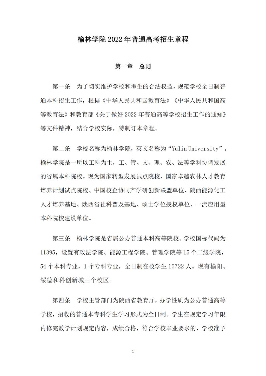 榆林公司 2022 年普通高考招生章程