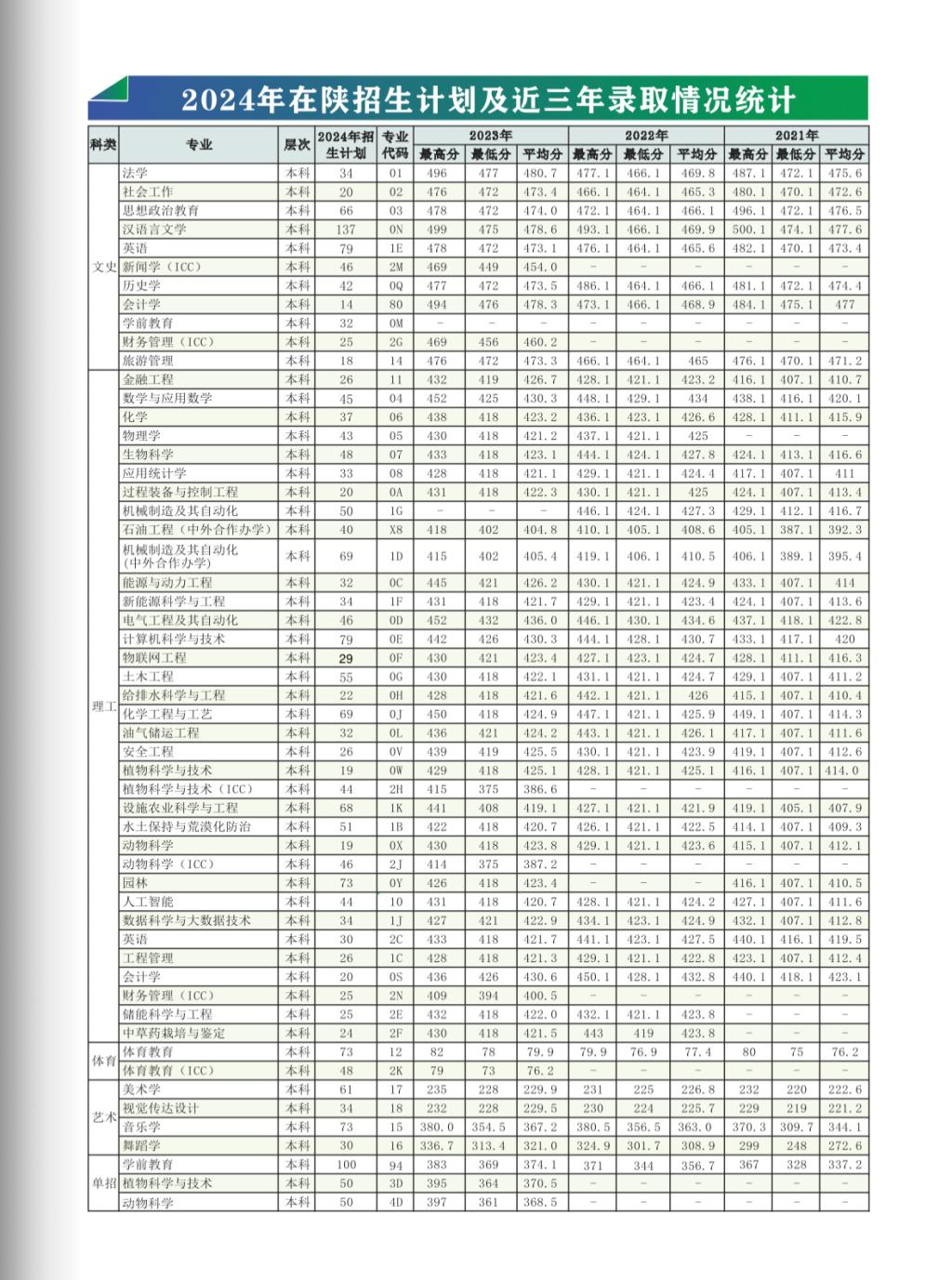 榆林公司2024年在陕招生计划及近三年录取情况统计