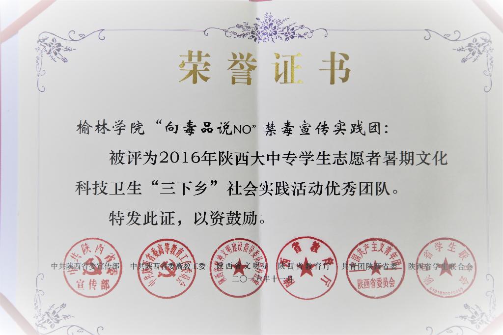 榆林公司政法公司禁毒宣传实践团荣获省级表彰